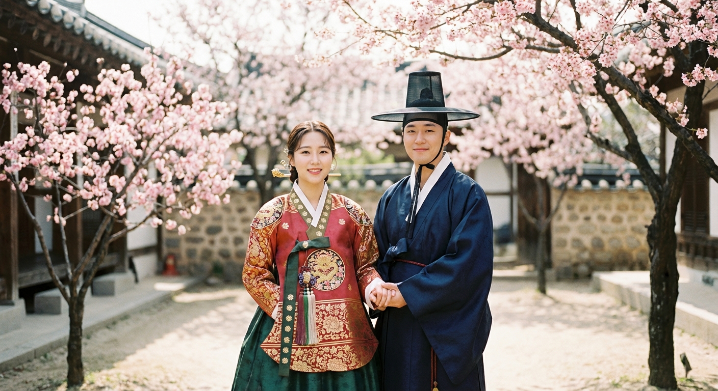 한복 웨딩 사진을 찍고 싶지만 전통 한옥 스튜디오 비용이 부담되나요? AI 웨딩 사진으로 한복 화보를 30초 만에 완성하는 방법. 한옥, 궁궐, 전통 배경까지 무료로 선택 가능합니다.